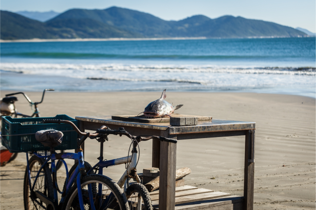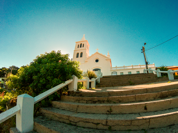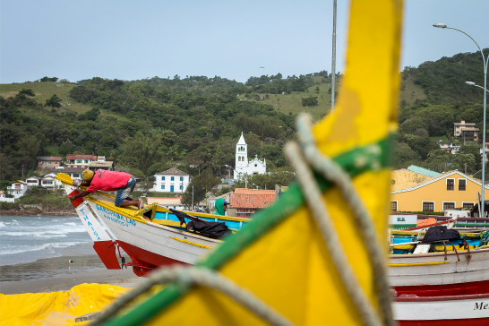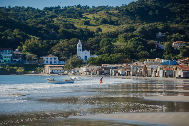 O nome tem origem indígena e significa "enseada de barcos", confirmando o quanto a história foi construída a partir da pesca e de curiosos que encontravam abrigo por aqui. Não à toa, um dos cenários mais lindos e emblemáticos é a composição em que o mar se mistura com os morros, a Capela de São Joaquim e os ranchos de pesca.